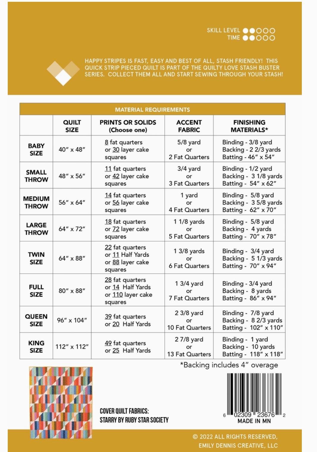 Happy Stripes by Quilty Love - Printed Paper Pattern