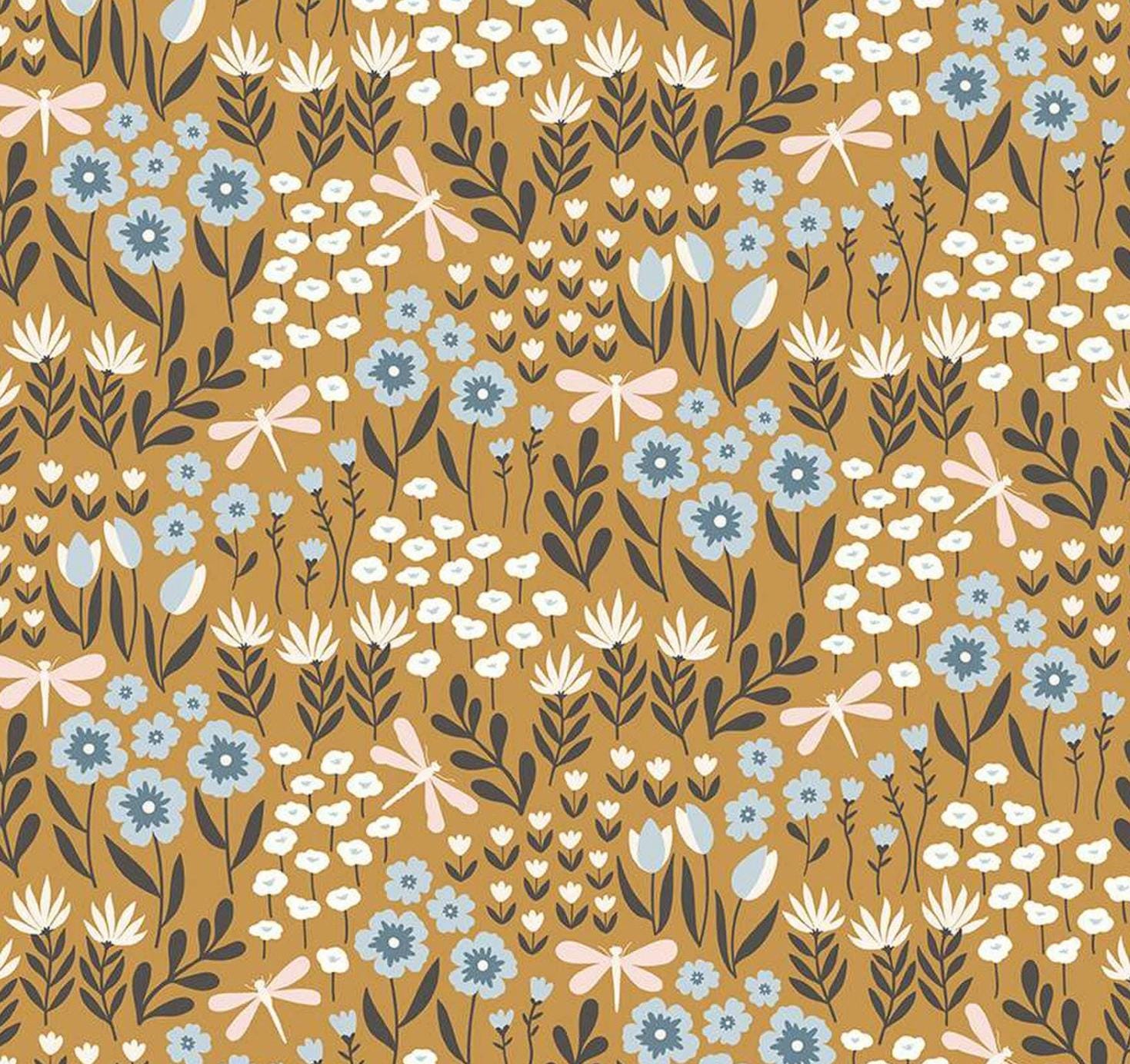 Riley Blake - Little Swan - Lakeside Floral - Curry - Fabric by the half yard